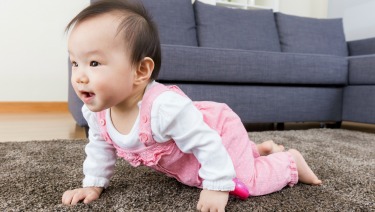 Because of your child’s new abilities, he or she will fall often. Protect your child from injury. Use gates on stairways and doors. Install operable window guards on all windows above the first floor. Remove sharp-edged or hard furniture from the room where your child plays.