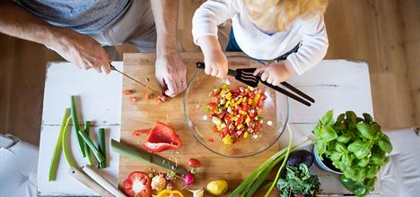 • Pay attention to adopting healthy eating habits—including sitting as a family at mealtime.