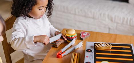 Imitating grown-ups and chipping in at home builds a sense of independence and responsibility. Involve kids as you clean, prepare meals, and make shopping lists! As you enlist kids to help in the actual cooking of meals, also gather some of their play food and kitchen-themed toys at the table. They can explore these while you're at the stove. Even empty pasta or cereal boxes or oatmeal and spice containers can be fun. The conversation and just being present with one another while you play (and work!) side-by-side is what's most important here.
