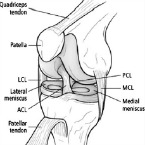 A variety of structures are particularly susceptible to injury among young athletes, including the bones that make up the knee joint (femur, tibia, and patella), the muscles and tendons that move the joint (quadriceps, patellar tendon and hamstrings), the cartilage that cushions the joint (medial and lateral meniscus) and the ligaments that stabilize the joint (medial collateral ligament, lateral collateral ligament, anterior cruciate ligament, and posterior cruciate ligament).