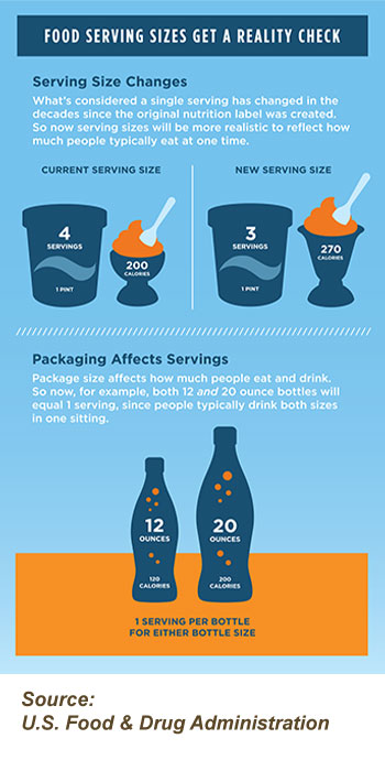 soda will be labeled as 1 serving, for example, since people are likely to drink either size at one time.
