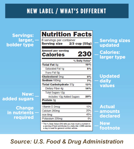 choices at the grocery store. The Nutrition Facts label on packaged foods and beverages is now easier to read and understand. It also includes more information on nutrients most U.S. children and adults get too much or too little of in their diets. The changes are based on new findings about diet-related health problems that affect growing numbers of children and adults.