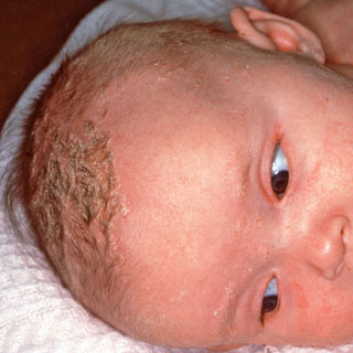 • A scaly rash on the scalp that starts in newborns