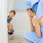 Algunos de los puntos de vista más frecuentes que experimentará durante el proceso de entrenamiento para el baño se relacionan con las formas en las que su familia trabaja unida. Es posible que observe durante seis meses o más que el entrenamiento para el baño generalmente lo hace (o a su pareja) tomar el rol del disciplinario de la familia mientras que su pareja (o usted) prefiere un enfoque más permisivo. (Todas las referencias en esta sección para una pareja pueden aplicarse a cualquier otro adulto involucrado en la crianza de su hijo). O bien, puede observar que su hijo generalmente acude a uno de los padres cuando tiene un accidente y al otro cuando anuncia un éxito. Usted y su pareja también pueden aprender a reconocer las señales que indican cuando uno de ustedes llega a su límite, lo que requiere una intervención rápida del otro. Finalmente, puede observar que uno de ustedes puede inclinarse más a "hacer" cosas por su hijo, mientras que el otro ayuda más a ser lo más independiente posible; un patrón que puede continuar durante años.