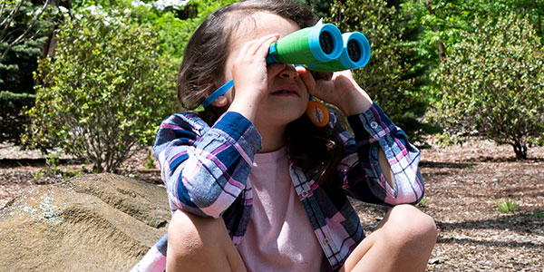 Coloquen un comedero para pájaros y disfruten de observar la vida silvestre que atrae a su ventana o patio. Cuenten cuántos tipos diferentes de visitas vienen. Si tienen binoculares, observen con más detalle otros lugares cercanos donde se posan. Para los pájaros que pueden oír pero no pueden ver, intenten adivinar dónde están. Para divertirse más, intenten imitar los sonidos que producen cuando llaman y cantan.