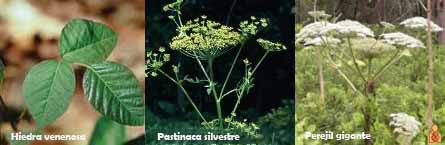 Muchos niños padecen de un sarpullido con ardor y picazón intensa en los sitios donde su piel roza las plantas como por ejemplo, la hiedra venenosa, roble venenoso o zumaque, que contienen un aceite pegajoso llamado urushiol. Una reacción alérgica cutánea causa enrojecimiento, hinchazón y ampollas. Otras plantas, como la chirivía o pastinaca silvestre, el perejil gigante y los cítricos contienen sustancias químicas que hacen que la piel tenga hipersensibilidad a la luz solar y causan un sarpullido por fitofotodermatitis.