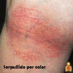 El sarpullido por calor (también conocido como sudamina o miliaria) se observa con mayor frecuencia en bebés y niños pequeños cuando se tapan los poros de las glándulas sudoríparas y la transpiración no puede salir. El sarpullido se ve como parches de pequeños bultitos o ampollas rosa o rojos debajo de la ropa o de sitios donde la piel tiende a plegarse (en el cuello, en los codos, en las axilas o en los muslos), aunque puede ocurrir en otras partes cubiertas.
