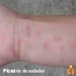 La picazón del nadador (también llamada dermatitis por cercaria o esquistosomiásica) puede aparecer después de jugar en cuerpos de agua donde los caracoles infectados liberan parásitos microscópicos. La erupción es causada por una reacción alérgica a los parásitos, que se encuentran con mayor frecuencia en aguas poco profundas y cálidas cerca de la costa donde los niños tienden a quedarse. Los parásitos se entierran en la piel y hacen que aparezcan pequeñas manchas rojizas y elevadas en la piel que no está cubierta por el traje de baño. También se pueden formar ronchas y ampollas.