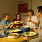 - Programe al menos una comida en familia. Los estudios de investigación sugieren que cenar regularmente en familia tiene efectos positivos en el desarrollo de los niños. Y el tiempo que pasan juntos puede ser divertido y unir más a los miembros de la familia. Recuerde apagar el televisor.