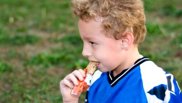 Opte por comidas pequeñas frecuentes y refrigerios. Trate de esparcir las calorías durante el día y evite comidas grandes muy cerca de la hora del ejercicio. Si pasa toda su tarde en el campo de pelota o en marcha, empacar alimentos para llevar es una opción muy práctica. Independientemente del tiempo que se encuentre fuera de casa, lleve consigo siempre un trozo de fruta o una barrita de proteína o nueces. Comer cada 3 horas ayudará a mantener estable el nivel de azúcar de la sangre de su niño y también a disminuir los excesos o la sobre ingesta a la hora de las comidas.